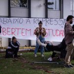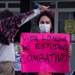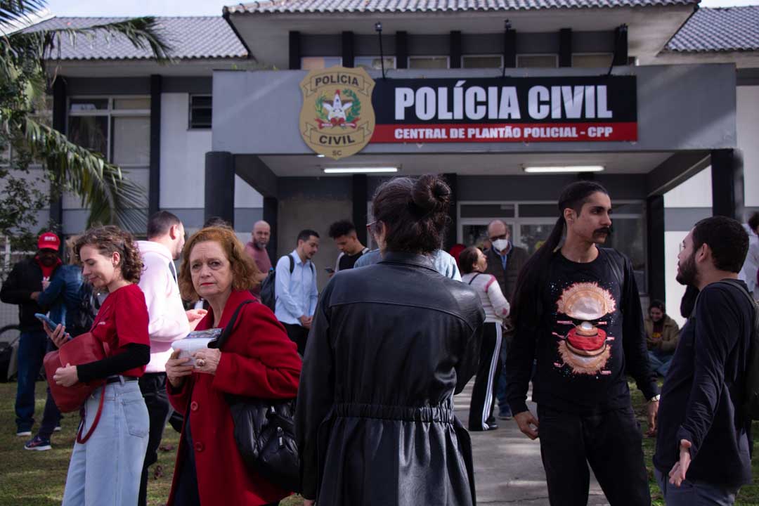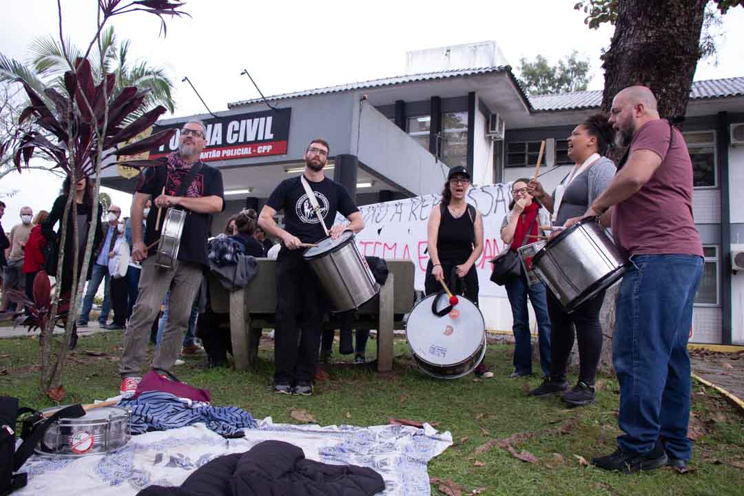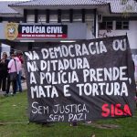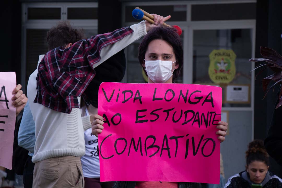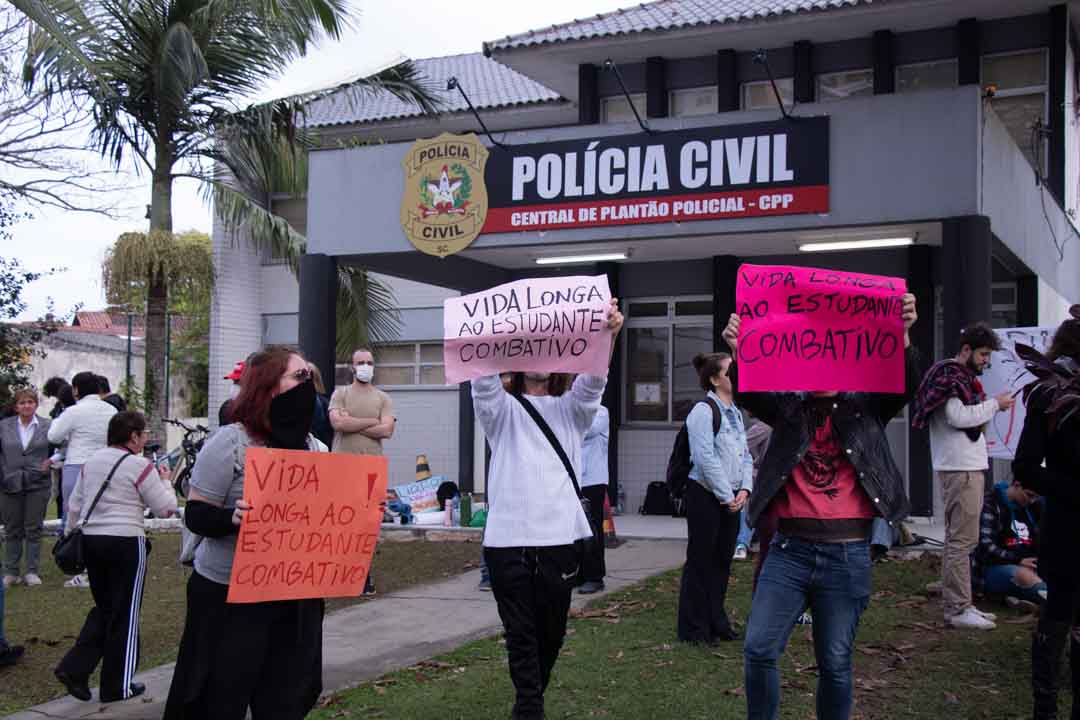 A estudante de filosofia da UFSC presa de forma truculenta no ato de ontem, 11 de agosto, foi solta perto das 16h desta sexta-feira (12/08), após ficar mais de 20 horas presa. O Alvará de Soltura foi expedido após a Audiência de Custódia que ocorreu no início da tarde de forma virtual. Dezenas de estudantes e militantes de movimentos sociais e entidades sindicais estiveram no Centro de Plantão Policial da Trindade, desde às 7h da manhã em Vigília. O SINTUFSC esteve presente na Vigília em defesa da soltura da estudante.