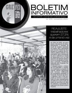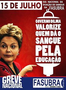 Seguindo orientação do Comando Nacional de Greve da FASUBRA, a categoria promove nesta quarta-feira (15/7) uma campanha de doação de sangue junto ao Banco de Sangue do Hospital Universitário Professor Polydoro Ernani de São Thiago. A recomendação do Comando Local de Greve é no sentido de que os grevistas compareçam