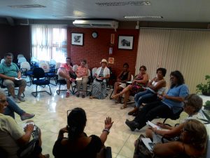 Durante duas horas um grupo de filiados, convidados e membros da direção conversaram na tarde desta quarta-feira (9/3) na sede do SINTUFSC sobre vários assuntos ligados à luta pelos direitos das mulheres. A roda de conversa foi uma iniciativa da coordenação do sindicato como uma atividade da campanha “Março é Delas”. A