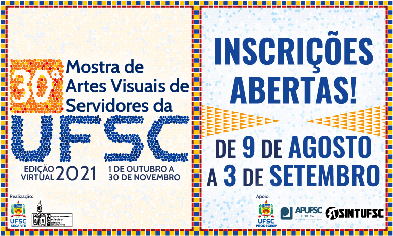 Estão abertas as inscrições para a “30ª Mostra de Artes Visuais de Servidores da UFSC” – Edição Virtual 2021. O evento receberá inscrições de 9 de agosto a 3 setembro de 2021, e os trabalhos artísticos em artes visuais serão exibidos virtualmente no período de 1º de outubro a 30 de novembro de 2021. Podem […]