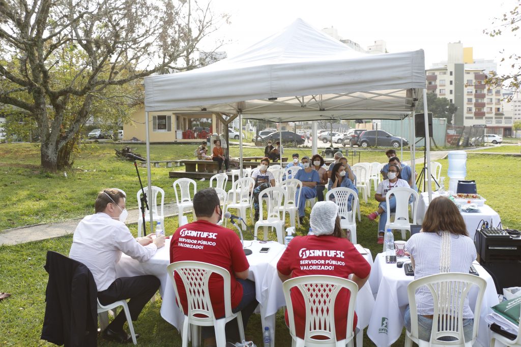 Nesta terça-feira (24/08) trabalhadores do Hospital Universitário da UFSC participaram da Assembleia Geral convocada pelo SINTUFSC, de forma presencial, no gramado em frente à Instituição. Coordenaram a mesa a diretora Marilene dos Santos e o coordenador geral do SINTUFSC, Marcus Paulo Pessôa. Também esteve presente na Assembleia o assessor jurídico do Sindicato, Guilherme Querne, para […]