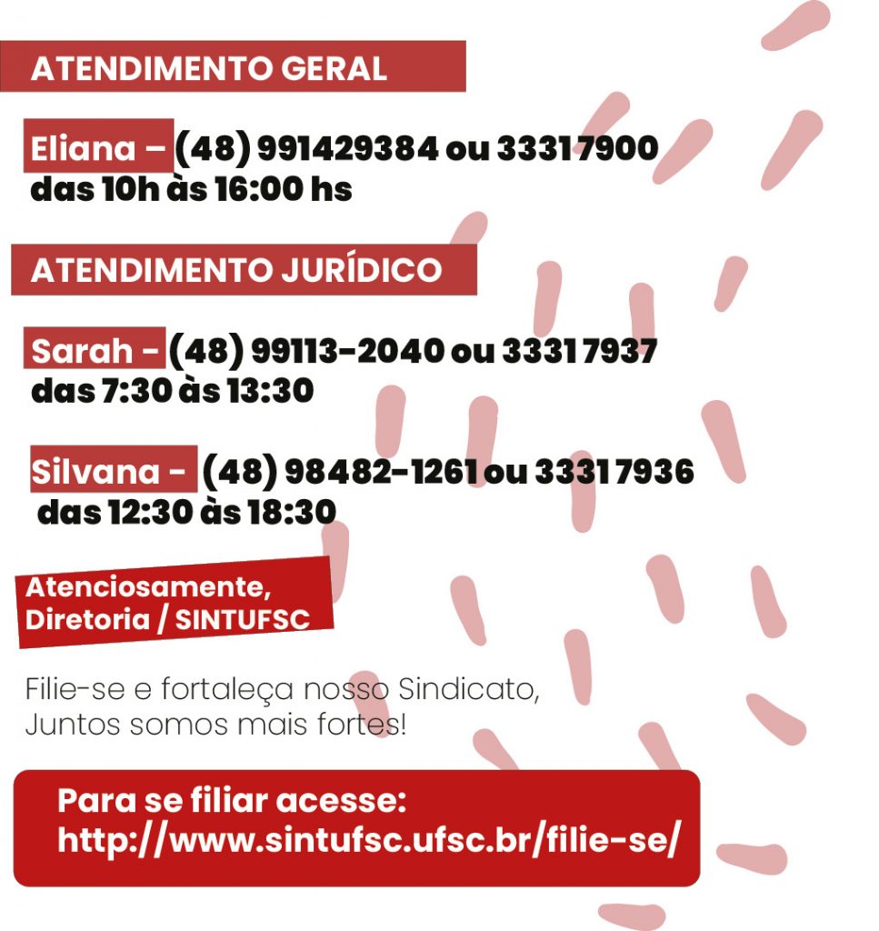 Novos horários de atendimento do SINTUFSC
