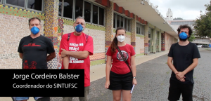 Na tarde desta quinta-feira (06/12), coordenadores do SINTUFSC e TAEs da UFSC estiveram na Reitoria da UFSC para entregar um ofício com questionamentos sobre as condições de trabalho para o retorno presencial na UFSC, diante do aumento de casos de Covid-19. Porém, foi informado aos coordenadores do SINTUFSC que