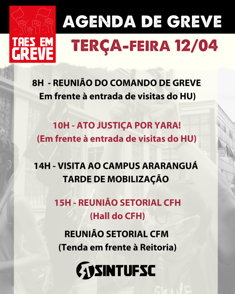 AGENDA DE GREVE (Terça-feira, 12/04)