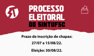 Inscrições de chapas para a escolha da nova Diretoria do SINTUFSC abrem nesta quarta-feira (27/07)