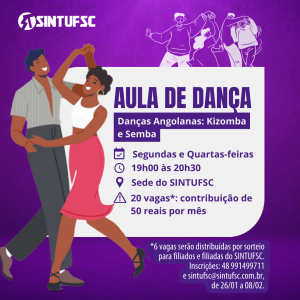 Inscrições abertas: Aulas de danças angolanas, Kizomba e Semba, na sede do SINTUFSC