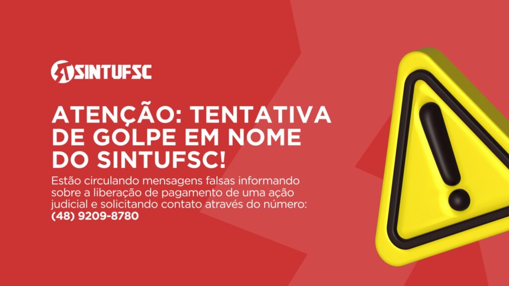 Alerta de Golpe! Estão enviando mensagens falsas usando o nome do SINTUFSC, informando sobre a liberação de pagamento de uma ação judicial e pedindo para entrar em contato com um número de telefone celular que não é o do sindicato. Não caia nessa! Para ter certeza, entre em contato apenas pelo telefone oficial: (48) 3331-7900. […]