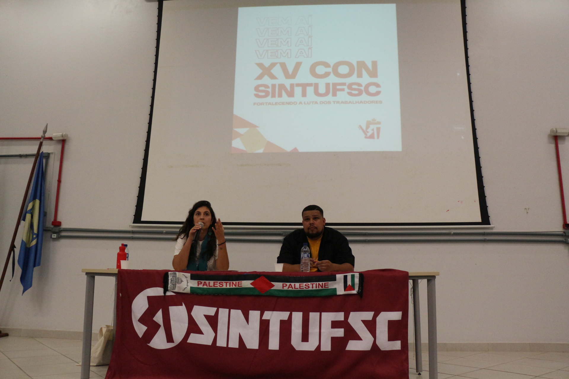 O XV CONSINTUFSC teve início nesta segunda-feira, 25, com a conferência “Capitalismo no Brasil Hoje e as Transformações no Mundo do Trabalho”, com Paulo Galo – militante de movimentos sociais e líder do movimento Entregadores Antifascistas. O congresso é espaço máximo de deliberação do SINTUFSC, onde trabalhadores técnico-administrativos da UFSC se reúnem para debater e definir os rumos do sindicato e das lutas da categoria.