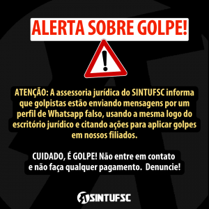 ATENÇÃO: A assessoria jurídica do SINTUFSC informa que golpistas estão enviando mensagens por um perfil de Whatsapp falso, usando a mesma logo do escritório jurídico e citando ações para aplicar golpes em nossos filiados.