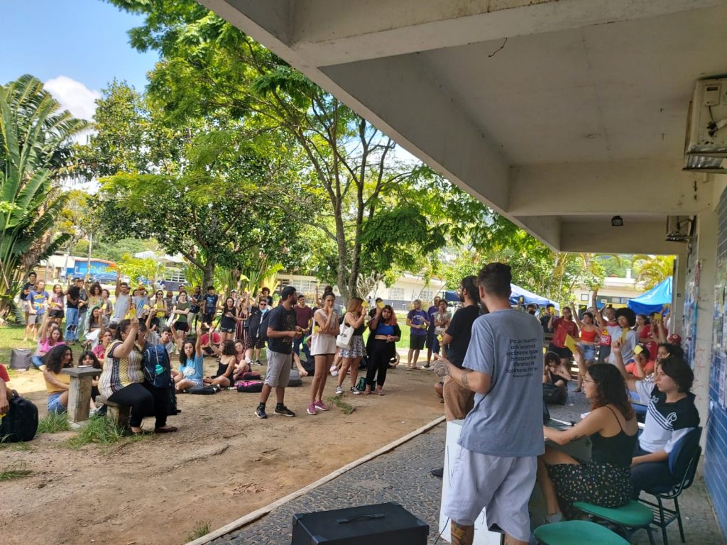Na tarde desta quarta-feira (07/12), o SINTUFSC esteve presente na Assembleia Estudantil conduzida pelo DCE da UFSC, e realizada em frente ao Restaurante Universitário. A reunião debateu formas de mobilização contra os cortes no orçamento das Universidades e seus impactos nos pagamentos de bolsas estudantis e de serviços essenciais para o funcionamento da UFSC. No início desta semana, a UFSC afirmou em nota que o Decreto Nº 11.269, publicado em 30 de novembro, bloqueou recursos e impossibilitou o pagamento de bolsas estudantis e de qualquer compromissos financeiros já assumidos. O corte pode afetar a manutenção do Restaurante Universitário (RU).