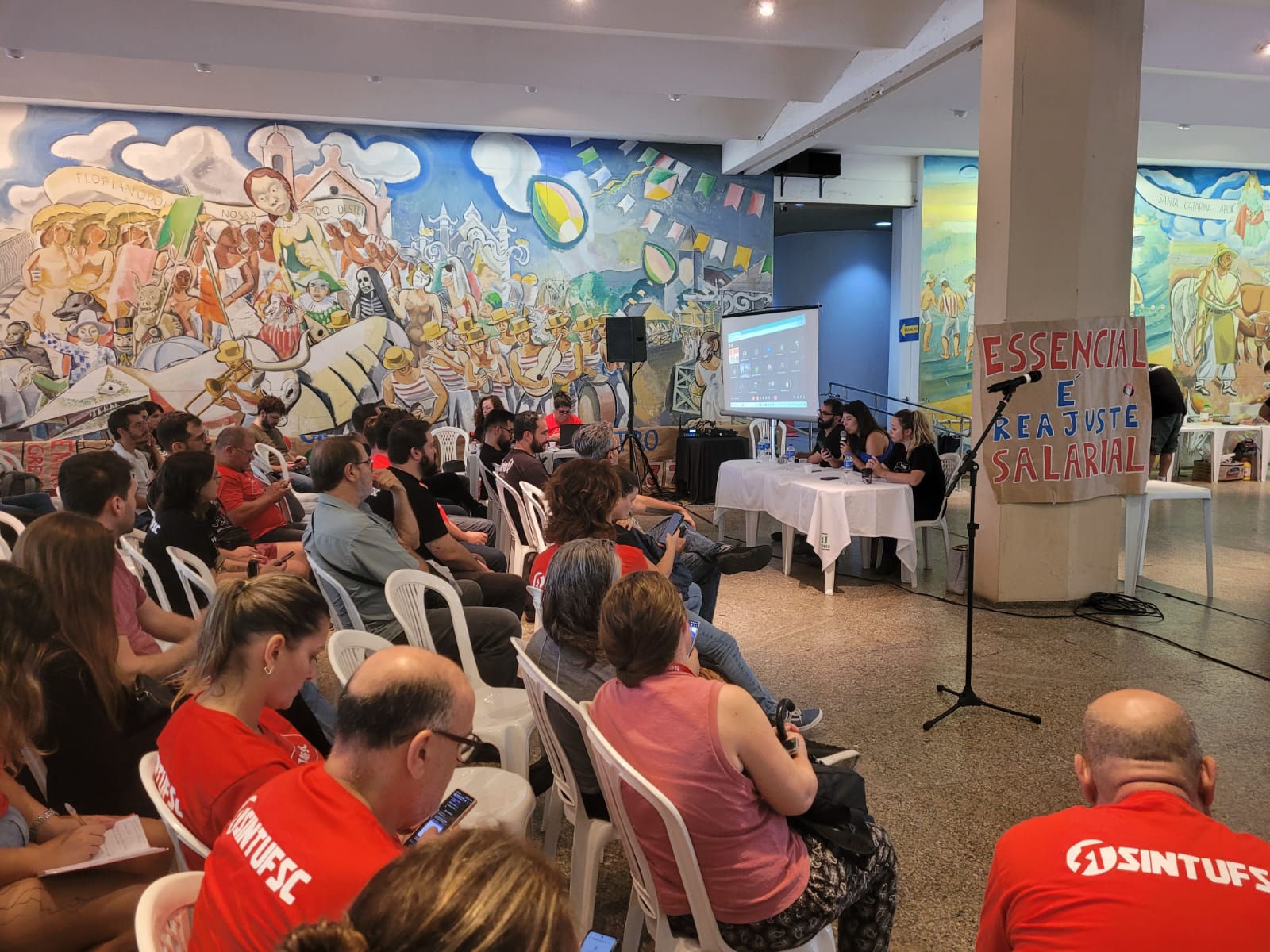 Em Assembleia Geral de Greve nesta terça-feira, 16, os trabalhadores técnico-administrativos da UFSC rejeitaram a proposta do governo de reajuste somente nos benefícios – sem reposição salarial em 2024. E aprovaram a continuidade do movimento grevista com aumento de articulação e pressão sobre autoridades e parlamentares para que defendam a greve e as reivindicações dos trabalhadores junto ao governo por reposição salarial, reestruturação da carreira e recomposição orçamentária das universidades.