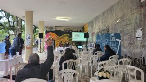 A assembleia ocorreu como parte das atividades do dia de mobilização contra o Arcabouço Fiscal convocadas pelo Sintufsc na Universidade, logo após a formação ‘’O Arcabouço Fiscal e os impactos sobre o serviço público”, com o economista Daniel Corrêa.