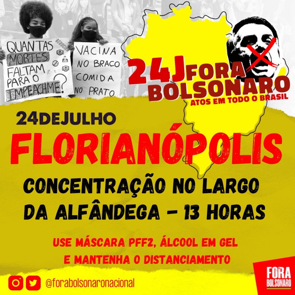 Voltamos às ruas no próximo sábado, 24 de julho, em todo o país, por #ForaBolsonaro e seu GOVERNO DA MORTE e exigindo que o deputado Arthur Lira, que até agora segue cúmplice do genocídio, paute o IMPEACHMENT na Câmara dos Deputados.