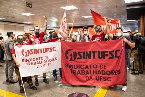O SINTUFSC está com uma comissão permanente em Brasília desde o dia 20 de setembro com disposição para barrar esse ataque e fortalecer a luta. Durante esse tempo é visível o crescimento das mobilizações, não só na Capital, mas também nas bases dos diversos sindicatos. A pressão tem feito com que os parlamentares voltem atrás antes de votar a favor da PEC 32.