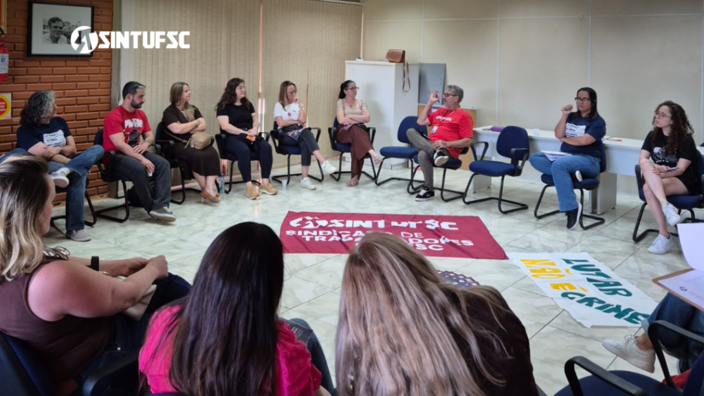 - Foram definidos os integrantes indicados pelo SINTUFSC para a Comissão Eleitoral das Entidades Representativas da UFSC (COMELEUFSC): João Gabriel Sobieralski de Souza e Isabel Cristina da Rosa, como titulares, e Luísa Bonetti Scirea Matheus e Nadine Schmidt Borges, na suplência.