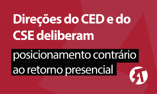 A direção do Centro de Ciências da Educação (CED) informou aos cerca de 40 trabalhadores presentes na reunião que as portarias não obrigam o retorno imediato às atividades presenciais e que entende que não há necessidade para o retorno neste momento. A direção do centro produzirá um documento com posicionamento contrário ao retorno presencial imediato.