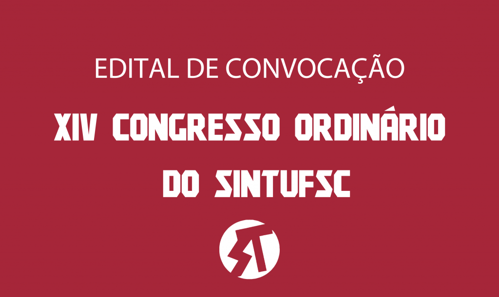 A DIRETORIA DO SINDICATO DE TRABALHADORES EM EDUCAÇÃO DAS INSTITUIÇÕES PÚBLICAS DE ENSINO SUPERIOR DO ESTADO DE SANTA CATARINA – SINTUFSC, entidade sindical de primeiro grau, com base territorial no Estado de Santa Catarina, em conformidade com o disposto na Seção I, do Capítulo III, do Estatuto Social, em especial o artigo 11, considerando a atual conjuntura e necessidade premente de discutir e elaborar políticas de ação sindical, visando atender as demandas da categoria frente aos atos governamentais e ainda com o objetivo de reformular o estatuto social da entidade, como forma de dinamizar a ação sindical, convoca o XIV CONGRESSO ORDINÁRIO DO SINTUFSC, a realizar-se nos dias 04 a 08 de abril de 2022, na sede social do SINTUFSC, com o tema “SINTUFSC 30 anos: passado, presente e futuro das lutas”. A eleição dos delegados ao Congresso Ordinário será feita em Assembleias Setoriais e no Seminário dos Aposentados, no período de 23 de fevereiro a 20 de março de 2022, conforme cronograma que será divulgado através dos meios de comunicação do SINTUFSC. A programação do congresso será divulgada nas redes sociais do SINTUFSC até o dia 04 de março pela Comissão Organizadora, conforme regimento aprovado em Assembleia-Geral Extraordinária.