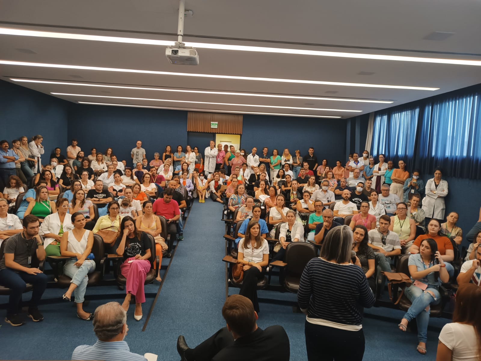 Em reunião convocada pelo Sintufsc para ouvir demandas e orientar juridicamente trabalhadores do Hospital Universitário Polydoro Ernani de São Thiago (HU/UFSC) sobre os impeditivos e condições legais em caso de abertura de processo de transferência de lotação de servidores RJU para a EBSERH (Empresa Brasileira de Serviços Hospitalares), a Reitoria da UFSC se posicionou de forma contrária à cessão dos trabalhadores à empresa. O encontro lotou o auditório do HU/UFSC, na última quinta-feira, 4.