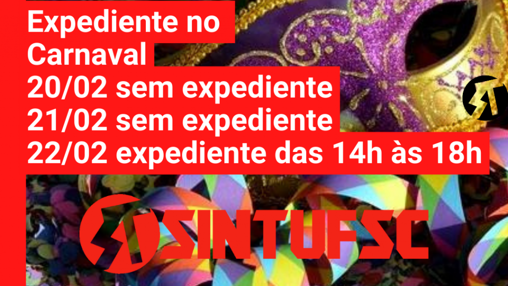 Informamos que o expediente no SINTUFSC no período de Carnaval