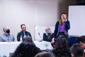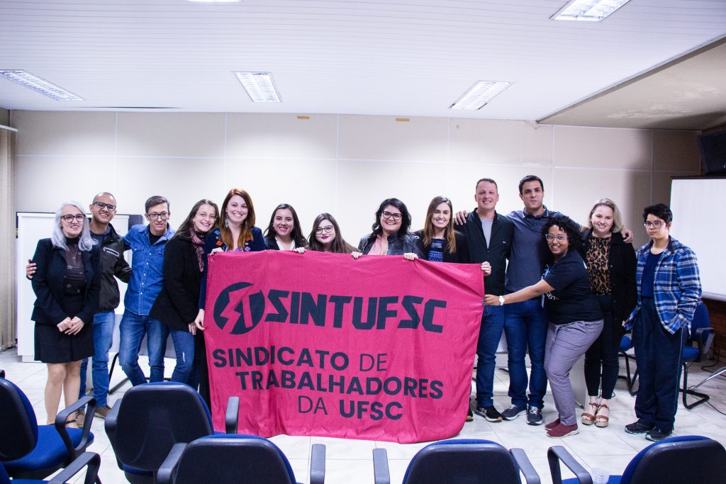 “Somos um grupo que se forjou na luta. Um grupo que viu a necessidade de construir o movimento dos trabalhadores, de construir um sindicato ativo na defesa dos direitos da categoria. Que tenha a audácia de se posicionar. O sindicato é para defender os trabalhadores da sua base, mas também se unir à classe trabalhadora, a outros sindicatos e movimentos sociais, na defesa de uma Universidade e sociedade mais justas”, falou Giana Carla Laikovski, que compõe junto a Silmara Maria Magnabosco e Tienko Vitor da Rocha a coordenação geral do SINTUFSC.