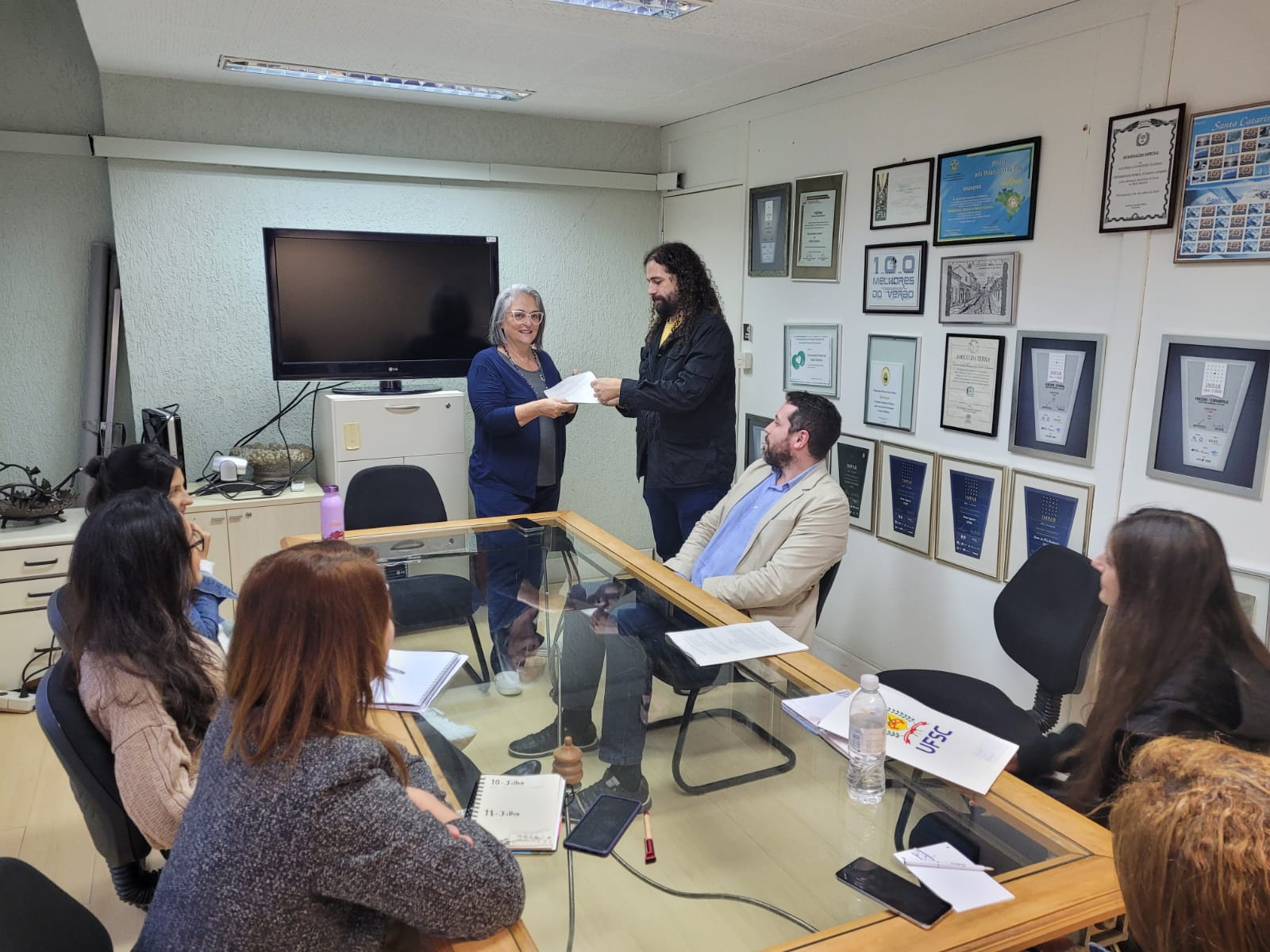 Em reunião com a pró-reitora de Gestão de Pessoas, Sandra Carrieri, e membros de sua equipe, nesta terça-feira, 11, representantes da CIS e do Sintufsc realizaram a entrega de uma minuta com a proposta de Resolução Normativa sobre Avaliação de Desempenho dos TAEs, elaborada por um Grupo de Trabalho com representante da CIS, do Sintufsc e dos servidores técnico-administrativos da base.