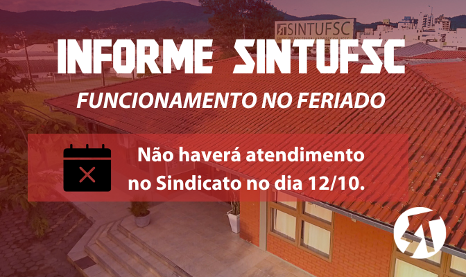 O SINTUFSC informa aos seus filiados que irá suspender as atividades do Sindicato no dia 12 de outubro, em virtude do feriado nacional.