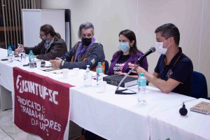 Nesta quarta-feira (22) aconteceu o primeiro encontro da “Jornada sobre o Teletrabalho” promovida pelo SINTUFSC. Durante o evento foi relatada a experiência da implementação do teletrabalho no INSS e no IFSC. A mediação foi feita por Jorge Cordeiro Balster, TAE da UFSC e diretor do SINTUFSC e contou com a participação de Idney Silva Júnior, Técnico em Assuntos Educacionais no IFSC e ex-TAE na UFSC e Magali Ines Pessini, Pedagoga e membro da CIS no IFSC e Luciano Wolffenbüttel Véras, Analista do Seguro Social, Diretor do Sindprevs/SC e da FENASPS.