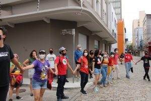 O ato foi finalizado com um abraço simbólico ao Instituto Arco-íris de Direitos Humanos, um espaço de convivência dedicado à política de redução de danos e acolhimento de populações vulneráveis em Florianópolis.
