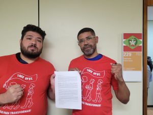 Integrantes da nossa delegação do SINTUFSC em Brasília (DF) estiveram nesta quarta-feira, 24, no gabinete do deputado federal Pedro Uczai (PT/SC) para entregar uma carta direcionada ao parlamentar pedindo apoio à greve. Confira um trecho da carta: “Somos trabalhadores técnico-administrativos da Universidade Federal de Santa Catarina e estamos em greve