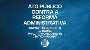Convidamos todas e todos os TAEs a participar do Ato contra a Reforma Administrativa, que será realizado amanhã (14/8), às 13h, na Praça Tancredo Neves, no centro de Florianópolis. A mobilização é organizada pelo Fórum Catarinense em Defesa do Serviço Público, do qual o SINTUFSC faz parte. A Reforma Administrativa