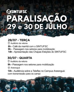Nos dias 29 e 30 de julho os técnicos-administrativos da UFSC vão paralisar!