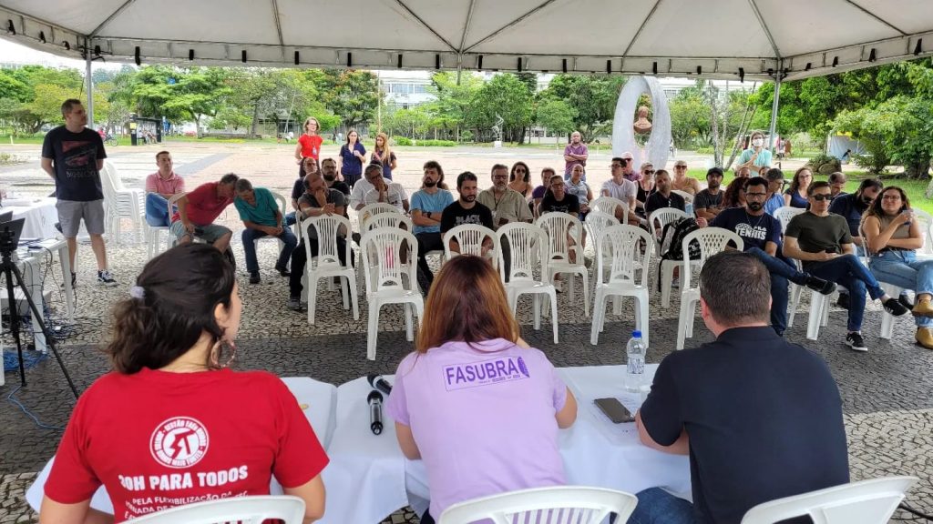 Na Assembleia Geral do SINTUFSC, realizada nesta quarta-feira (01/03), foi discutida a conjuntura nacional e repassado um informe das Mesas de Negociação que trata do reajuste salarial. A Mesa de Negociação é composta por representantes do Fórum Nacional das Entidades Representativas dos Servidores Federais (Fonasefe) e o Fórum das Carreiras de Estado (Fonacate) e do Governo Federal.