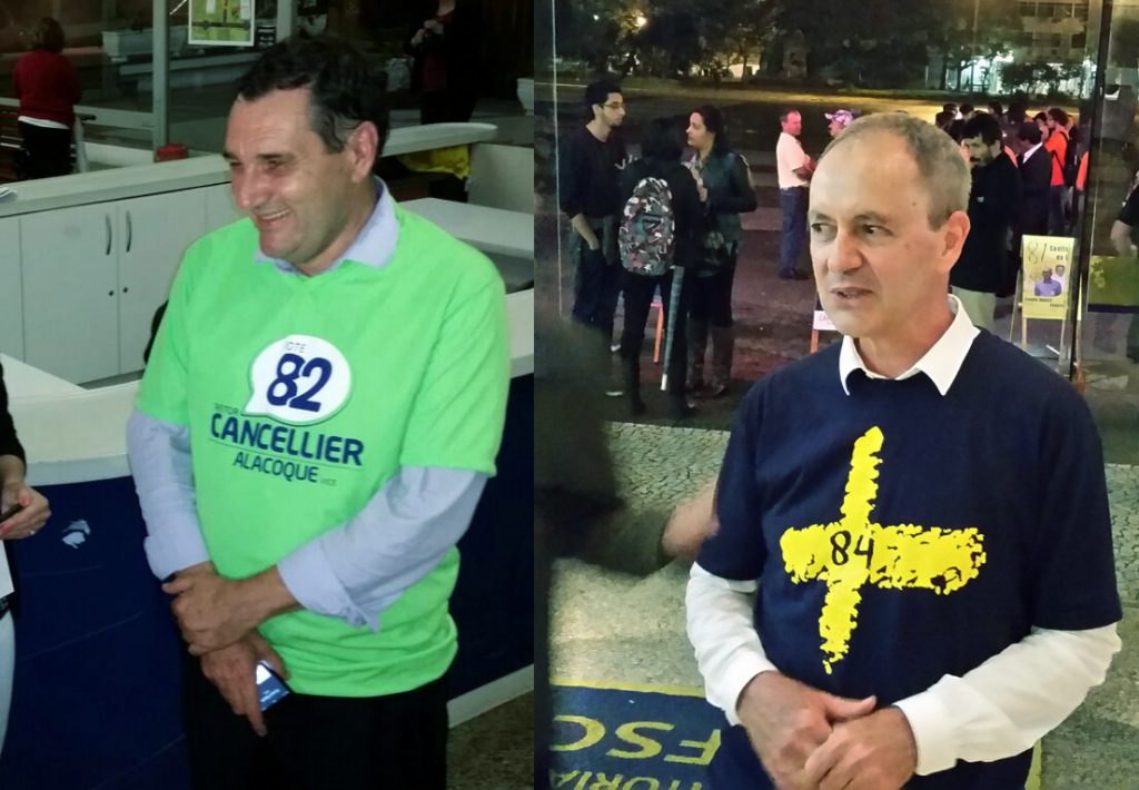 Dentro de três semanas as chapas 82, formada por Luis Carlos Cancellier de Olivo e Alacoque Lorenzini Erdmann, e 84, formada por Edson Roberto De Pieri e Carlos Alberto Marques, estarão novamente nas urnas eletrônicas para a comunidade universitária confirmar a escolha dos futuros reitor e vice-reitor da UFSC para o quadriênio 2016-2019. O segundo turno da consulta informal está marcado para o dia 11 de novembro, quarta-feira. O resultado da apuração foi divulgado oficialmente na tarde de quinta-feira (22) pela Comeleufsc, um dia após o primeiro turno. A homologação das duas chapas mais votadas também foi confirmada na quinta.