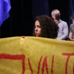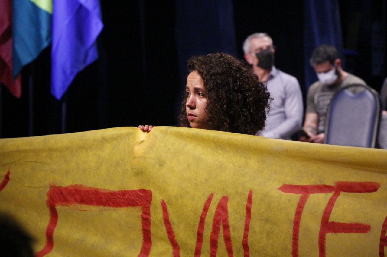 Durante a sessão, estudantes e servidores do curso de Pedagogia se manifestaram sobre o crime de racismo ocorrido no curso, pedindo que o CUn aprove uma política série de combate ao racismo e demais formas de opressões.