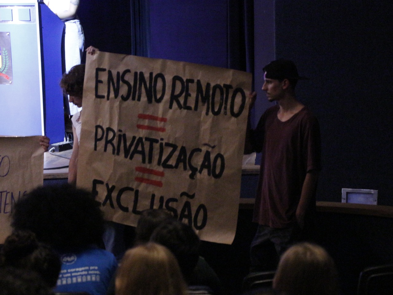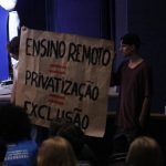 No mesmo sentido, estudantes da pós-graduação realizaram uma manifestação contra a implementação do ensino remoto e híbrido na pós, exigindo que a normativa aprovada pela Câmara de Pós-Graduação seja retirada da pauta do Conselho, confome encaminhamento de Assembleia da categoria.