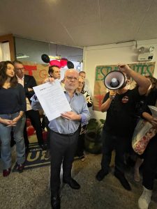 “Reivindicamos que o reitor Irineu Manoel de Souza se comprometa e atenda a pauta local da greve dos Técnicos Administrativos em Educação da UFSC e que esta reitoria responda sua posição sobre as nossas reivindicações até o dia 06/05/2024.