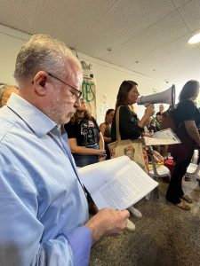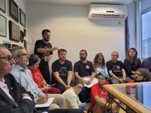 Realizamos nesta sexta-feira, 25, pela manhã, o ato de entrega da pauta local de reivindicações da greve para o reitor da UFSC, Irineu Manoel de Souza.