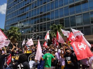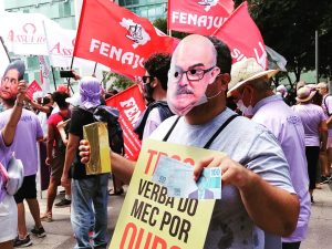 Na manhã desta segunda-feira (29/03), os TAEs participaram de ato em frente ao Ministério da Educação, responsabilização de Milton Ribeiro, que admitiu em gravação a existência de favorecimento no repasse de recursos do Ministro da Educação e cobrar a investigação do envolvimento do Bolsonaro no esquema de corrupção do “Gabinete Paralelo”.