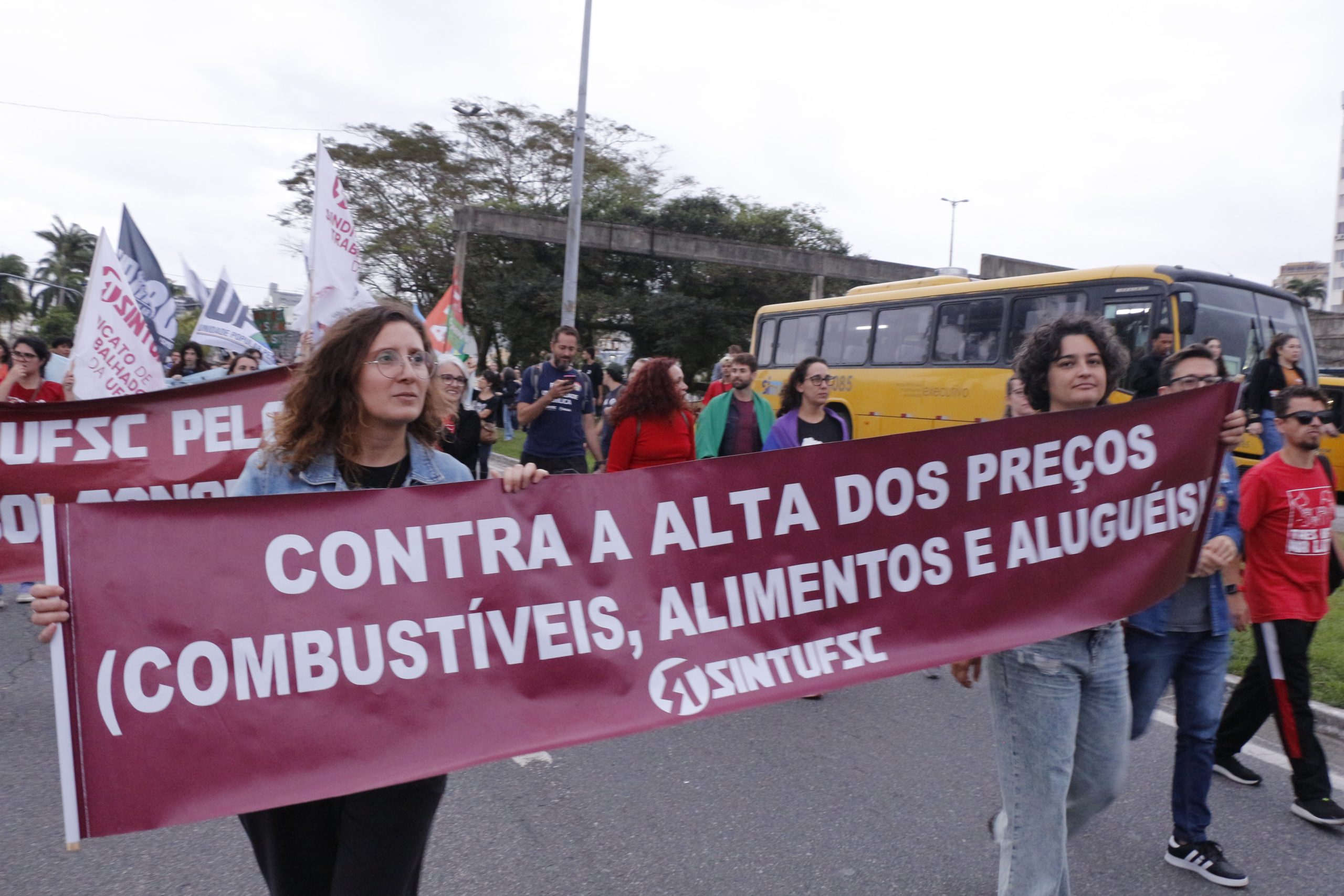 Em Florianópolis, milhares foram ao ato que teve como ponto de partida o Largo da Alfândega. O SINTUFSC reuniu os trabalhadores junto as faixas com dizeres Fora Bolsonaro e Contra o aumento do custo de vida. “Nós estamos neste ato para denunciar essa política de morte, essa política que desmonta a nossa universidade. Trabalhadores e estudantes juntos contra os em defesa da educação pública para que possamos construir de fato uma universidade popular”, falou a coordenadora-geral do SINTUFSC Giana Laikovski.