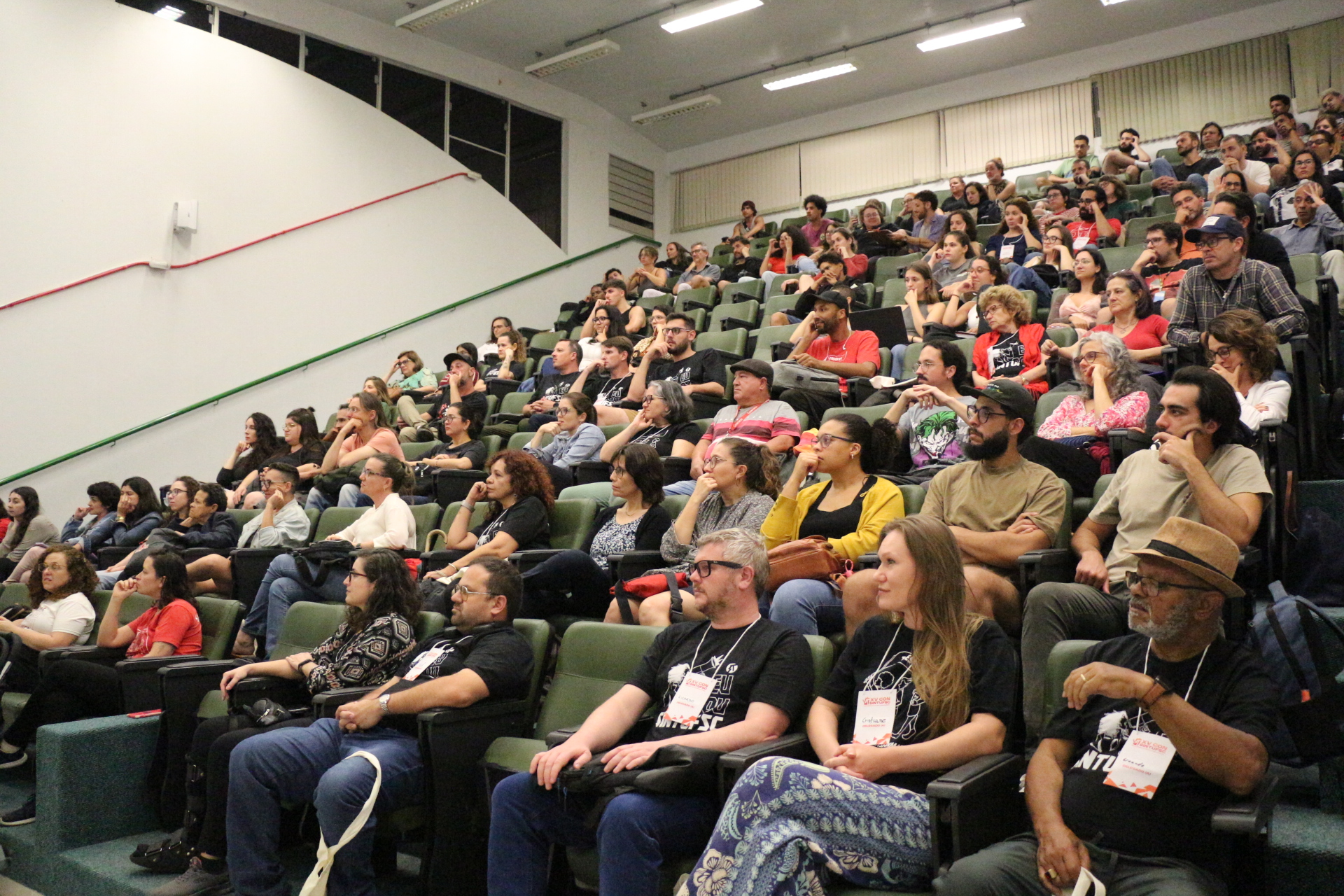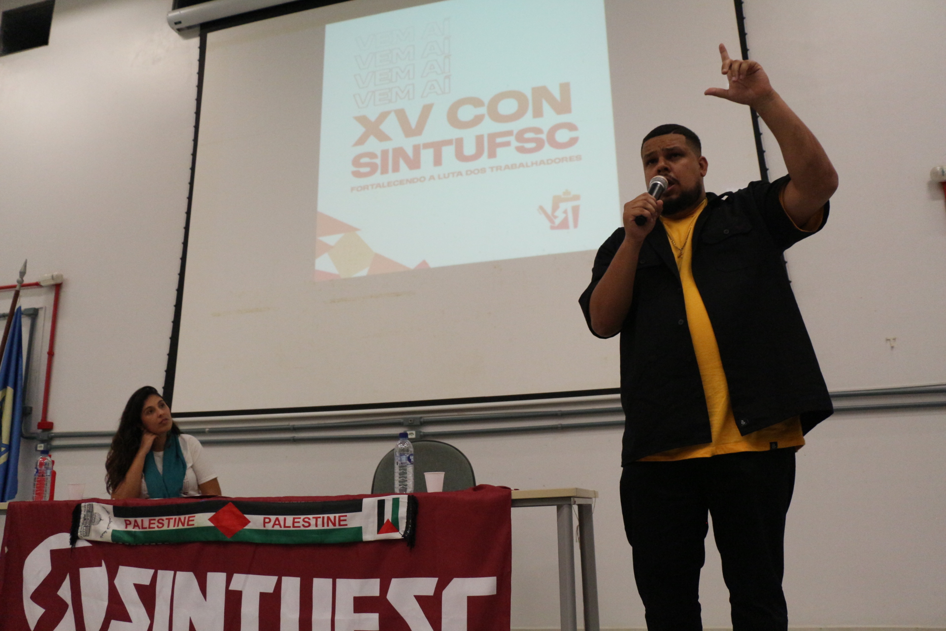 O evento teve abertura com a conferência “Capitalismo no Brasil Hoje e as Transformações no Mundo do Trabalho”, com Paulo Galo – militante de movimentos sociais e líder do movimento Entregadores Antifascistas, no auditório do CCS/UFSC. E apresentação cultural de poesias do grupo Slam Cruz e Souza.