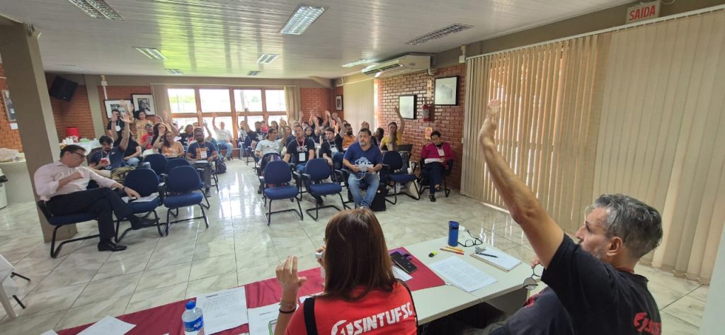 O XV Congresso do Sindicato dos Trabalhadores Técnico-Administrativos da Universidade Federal de Santa Catarina (XV CONSINTUFSC) aprovou o Plano de Lutas para o triênio 2025 a 2028. No eixo geral, o horizonte estratégico da luta da categoria se concentrará em três principais pontos:
