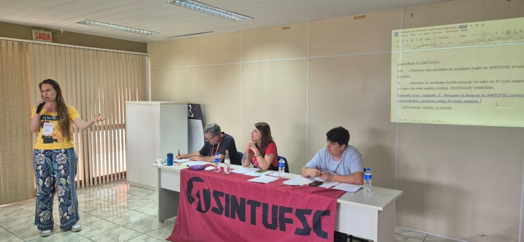 Durante o congresso, também foi realizada a assembleia estatutária, em que foram aprovadas alterações no Estatuto do SINTUFSC, como a composição da diretoria, a concessão de benefícios a filiados e normas administrativas do sindicato. O texto aprovado será divulgado na íntegra e passará a valer após a revisão e registro em cartório, nas próximas semanas.